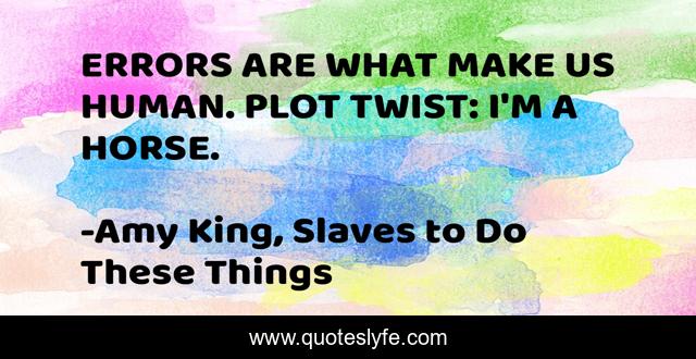 This page presents the quote "ERRORS ARE WHAT MAKE US HUMAN. PLOT TWIST: I'M A HORSE.". Author of this quote is Amy King, Slaves to Do These Things. This quote is about american-poetry, art, poetry, philosophy,.