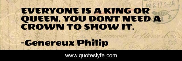 "Genereux Philip Quotes." Quoteslyfe.com, 2025. Fri. 05 Dec. 2025. <https://www.quoteslyfe.com/quote/EVERYONE-IS-A-KING-OR-QUEEN-YOU-83450>.