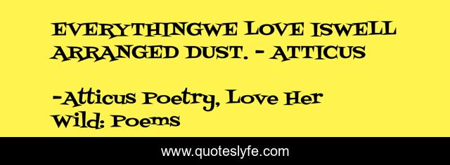"Atticus Poetry, Love Her Wild: Poems Quotes." Quoteslyfe.com, 2025. Sat. 06 Dec. 2025. <https://www.quoteslyfe.com/quote/EVERYTHINGWE-LOVE-ISWELL-ARRANGED-DUST-ATTICUS-22647>.