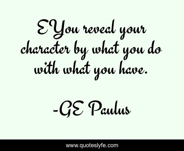 This page presents the quote "EYou reveal your character by what you do with what you have.". Author of this quote is GE Paulus. This quote is about serving-others, leadership, humanity, service,.