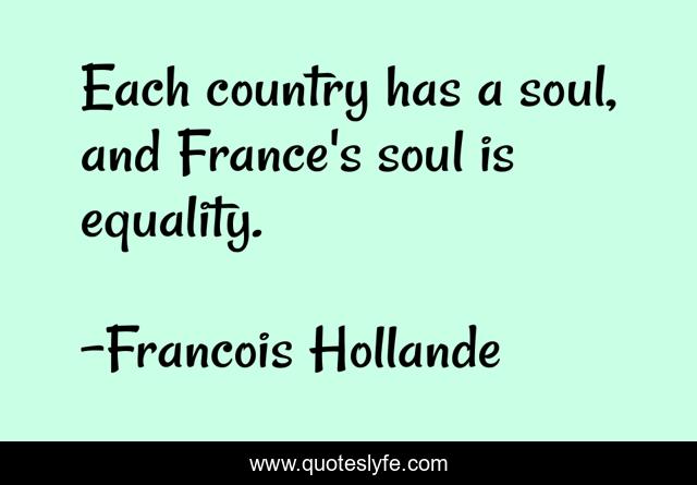 This page presents the quote "Each country has a soul, and France's soul is equality.". Author of this quote is Francois Hollande. This quote is about country, soul, france,.