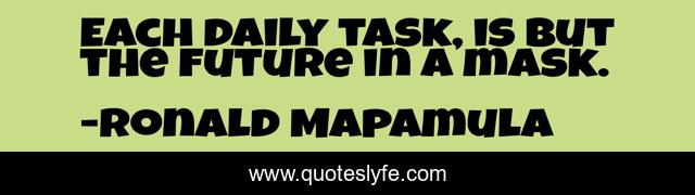 This page presents the quote "Each daily task, is but the future in a mask.". Author of this quote is Ronald Mapamula. This quote is about business, success, taking-responsibility, winning, excellence, achievement, greatness, action, taking-action,.