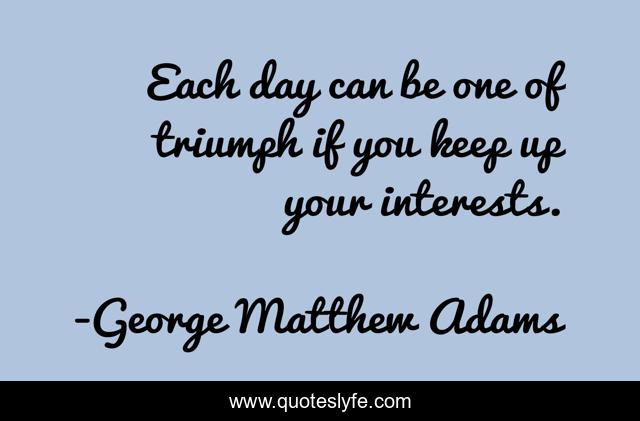 This page presents the quote "Each day can be one of triumph if you keep up your interests.". Author of this quote is George Matthew Adams. This quote is about day, one,.