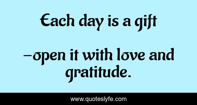 "open it with love and gratitude. Quotes." Quoteslyfe.com, 2025. Sat. 06 Dec. 2025. <https://www.quoteslyfe.com/quote/Each-day-is-a-gift-135731>.