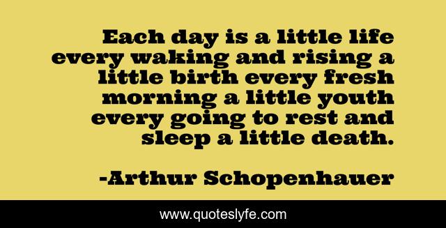 This page presents the quote "Each day is a little life every waking and rising a little birth every fresh morning a little youth every going to rest and sleep a little death.". Author of this quote is Arthur Schopenhauer. .