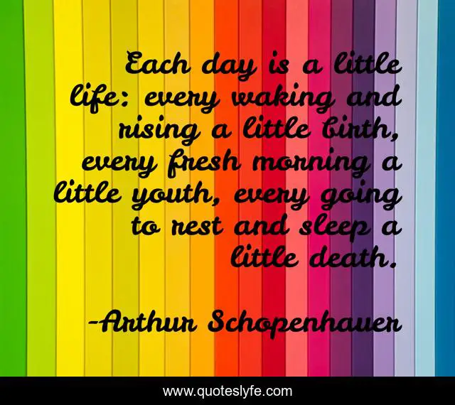 This page presents the quote "Each day is a little life: every waking and rising a little birth, every fresh morning a little youth, every going to rest and sleep a little death.". Author of this quote is Arthur Schopenhauer. This quote is about life, sleep, morning,.
