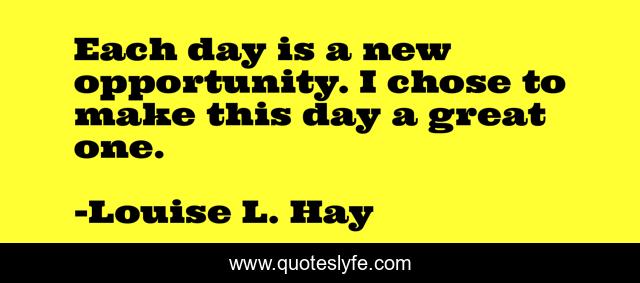 This page presents the quote "Each day is a new opportunity. I chose to make this day a great one.". Author of this quote is Louise L. Hay. This quote is about quotes, louise-hay,.