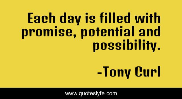 This page presents the quote "Each day is filled with promise, potential and possibility.". Author of this quote is Tony Curl. This quote is about new-day, potential, promise, possibility, inspiration,.