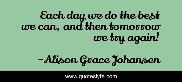 "Alison Grace Johansen Quotes." Quoteslyfe.com, 2025. Fri. 05 Dec. 2025. <https://www.quoteslyfe.com/quote/Each-day-we-do-the-best-we-213266>.