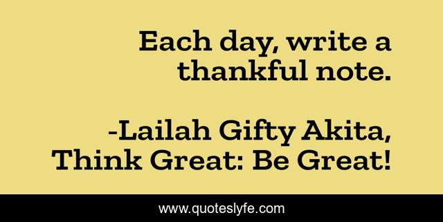 "Lailah Gifty Akita, Think Great: Be Great! Quotes." Quoteslyfe.com, 2025. Sat. 06 Dec. 2025. <https://www.quoteslyfe.com/quote/Each-day-write-a-thankful-note-97285>.