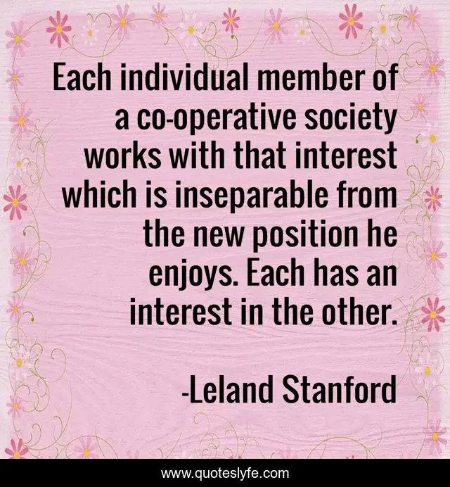 "Leland Stanford Quotes." Quoteslyfe.com, 2025. Fri. 05 Dec. 2025. <https://www.quoteslyfe.com/quote/Each-individual-member-of-a-co-operative-329237>.