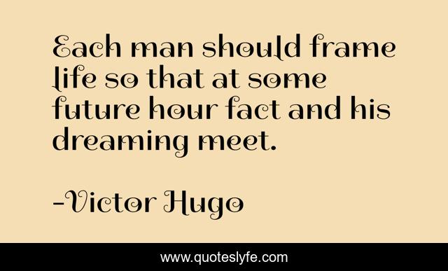 This page presents the quote "Each man should frame life so that at some future hour fact and his dreaming meet.". Author of this quote is Victor Hugo. This quote is about enthusiasm, inspirational,.