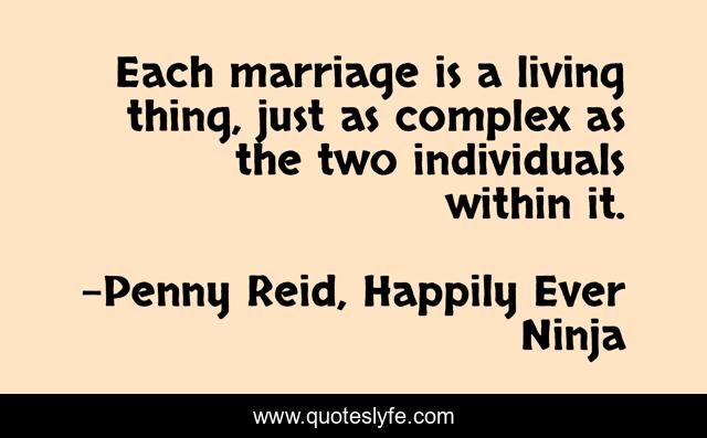 This page presents the quote "Each marriage is a living thing, just as complex as the two individuals within it.". Author of this quote is Penny Reid, Happily Ever Ninja. .