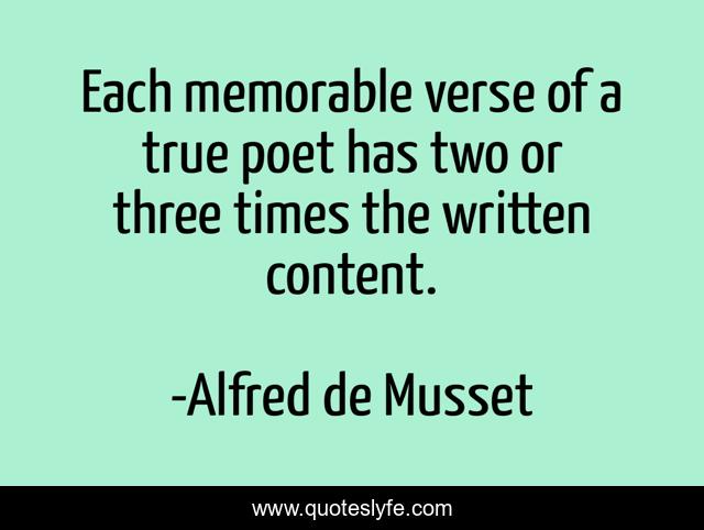 This page presents the quote "Each memorable verse of a true poet has two or three times the written content.". Author of this quote is Alfred de Musset. This quote is about memorable, true, three,.