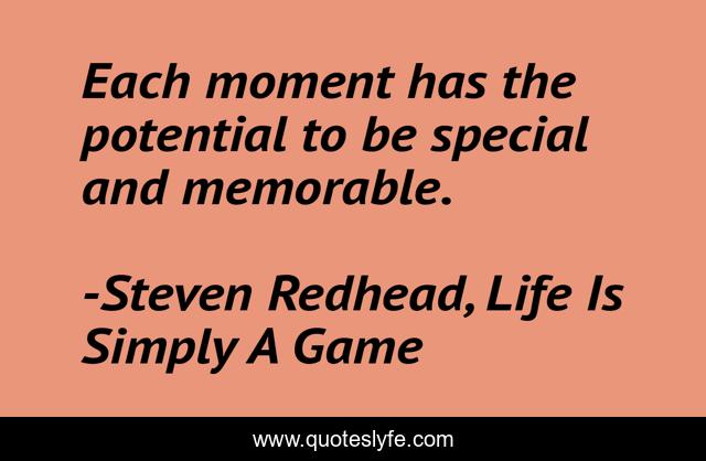 This page presents the quote "Each moment has the potential to be special and memorable.". Author of this quote is Steven Redhead, Life Is Simply A Game. This quote is about memorable, moment, potential,.