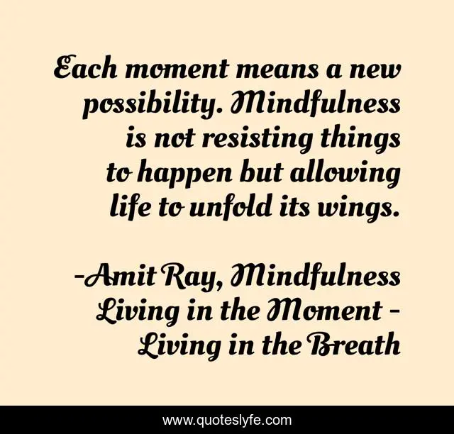 "Amit Ray, Mindfulness Living in the Moment - Living in the Breath Quotes." Quoteslyfe.com, 2025. Mon. 08 Dec. 2025. <https://www.quoteslyfe.com/quote/Each-moment-means-a-new-possibility-Mindfulness-159441>.