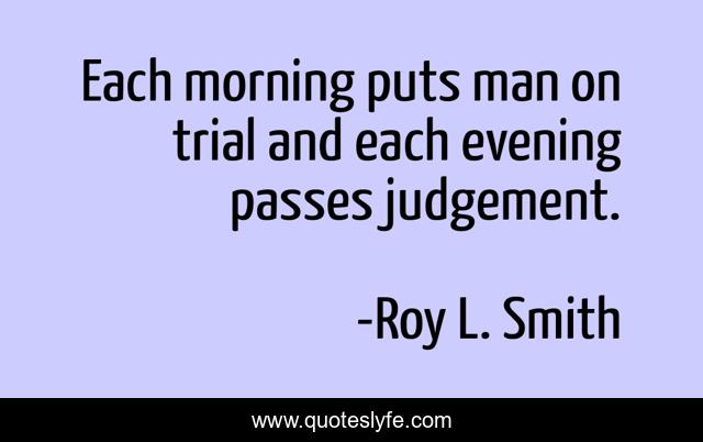 This page presents the quote "Each morning puts man on trial and each evening passes judgement.". Author of this quote is Roy L. Smith. .