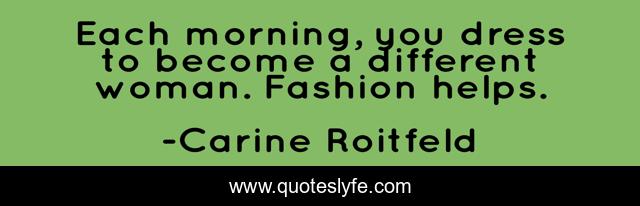 This page presents the quote "Each morning, you dress to become a different woman. Fashion helps.". Author of this quote is Carine Roitfeld. This quote is about woman, dress, fashion,.