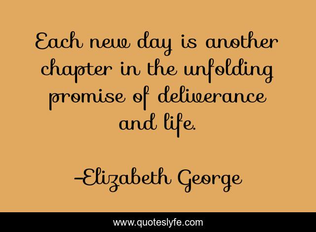 This page presents the quote "Each new day is another chapter in the unfolding promise of deliverance and life.". Author of this quote is Elizabeth George. This quote is about chapter, faith, life, peace, christian, love, god, work, deliver,.