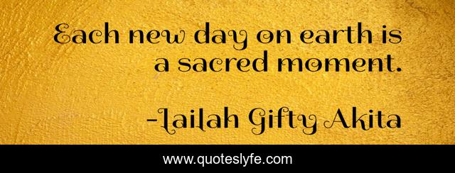 This page presents the quote "Each new day on earth is a sacred moment.". Author of this quote is Lailah Gifty Akita. This quote is about earth, new-day, sacred, sacred-wisdom,.