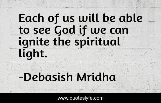 This page presents the quote "Each of us will be able to see God if we can ignite the spiritual light.". Author of this quote is Debasish Mridha. This quote is about life, love, knowledge, inspirational, intelligence, philosophy, wisdom, quotes, affection,.