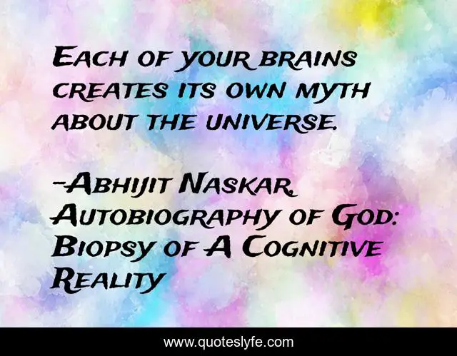 "Abhijit Naskar, Autobiography of God: Biopsy of A Cognitive Reality Quotes." Quoteslyfe.com, 2025. Fri. 05 Dec. 2025. <https://www.quoteslyfe.com/quote/Each-of-your-brains-creates-its-own-87011>.