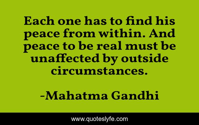 This page presents the quote "Each one has to find his peace from within. And peace to be real must be unaffected by outside circumstances.". Author of this quote is Mahatma Gandhi. .