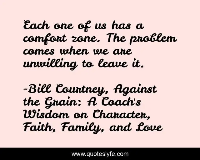 "Bill Courtney, Against the Grain: A Coach's Wisdom on Character, Faith, Family, and Love Quotes." Quoteslyfe.com, 2025. Mon. 08 Dec. 2025. <https://www.quoteslyfe.com/quote/Each-one-of-us-has-a-comfort-230156>.