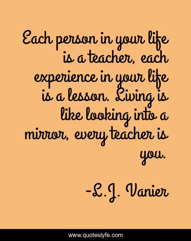 Each person in your life is a teacher, each experience in your life is a lesson. Living is like looking into a mirror, every teacher is you.