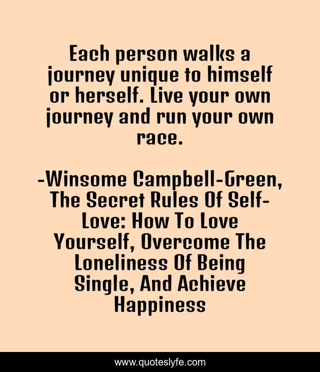 "Winsome Campbell-Green, The Secret Rules Of Self-Love: How To Love Yourself, Overcome The Loneliness Of Being Single, And Achieve Happiness Quotes." Quoteslyfe.com, 2025. Fri. 05 Dec. 2025. <https://www.quoteslyfe.com/quote/Each-person-walks-a-journey-unique-to-201231>.