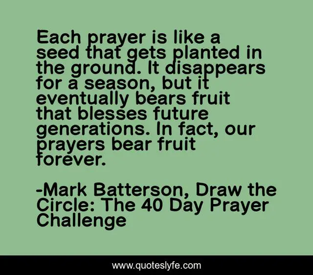 "Mark Batterson, Draw the Circle: The 40 Day Prayer Challenge Quotes." Quoteslyfe.com, 2025. Mon. 08 Dec. 2025. <https://www.quoteslyfe.com/quote/Each-prayer-is-like-a-seed-that-115353>.