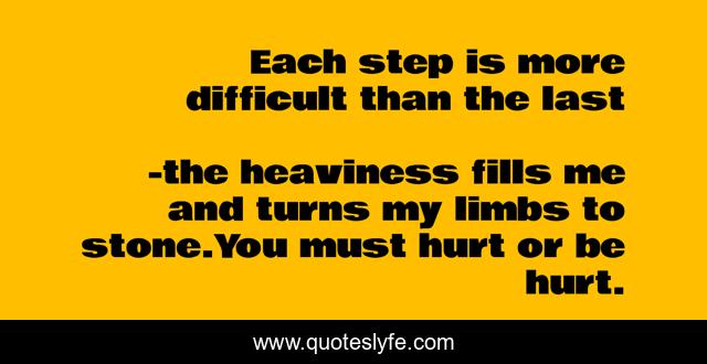 "the heaviness fills me and turns my limbs to stone.You must hurt or be hurt. Quotes." Quoteslyfe.com, 2025. Fri. 05 Dec. 2025. <https://www.quoteslyfe.com/quote/Each-step-is-more-difficult-than-the-179137>.