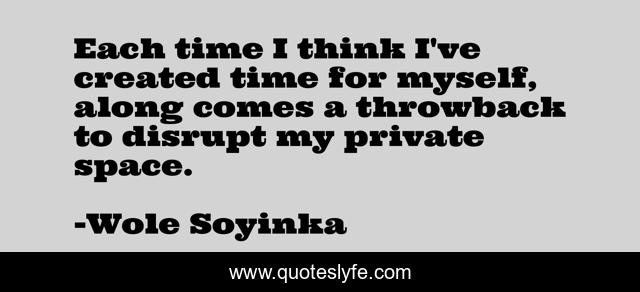 This page presents the quote "Each time I think I've created time for myself, along comes a throwback to disrupt my private space.". Author of this quote is Wole Soyinka. This quote is about myself, think, time,.