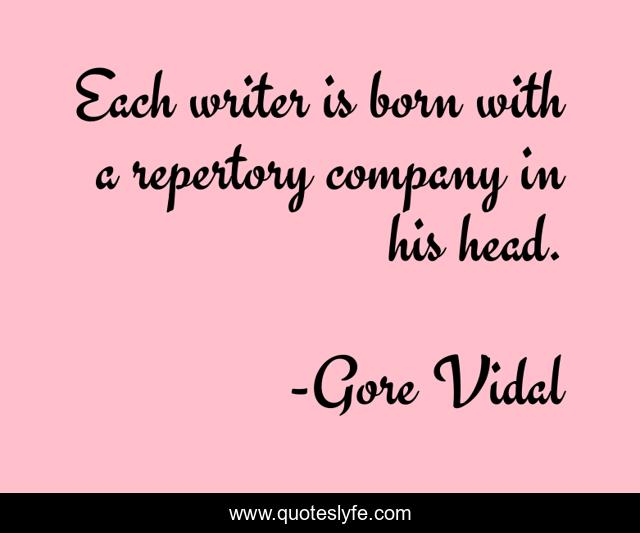 This page presents the quote "Each writer is born with a repertory company in his head.". Author of this quote is Gore Vidal. .