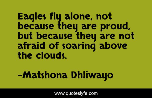 "Matshona Dhliwayo Quotes." Quoteslyfe.com, 2025. Fri. 05 Dec. 2025. <https://www.quoteslyfe.com/quote/Eagles-fly-alone-not-because-they-are-189978>.