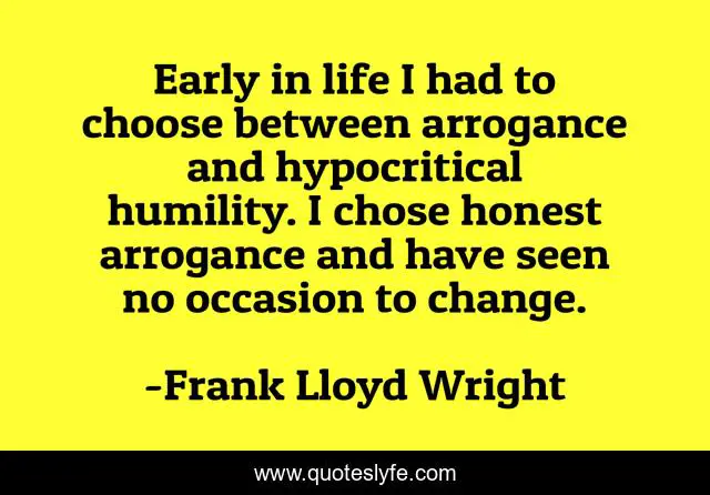 This page presents the quote "Early in life I had to choose between arrogance and hypocritical humility. I chose honest arrogance and have seen no occasion to change.". Author of this quote is Frank Lloyd Wright. This quote is about architecture, architects,.