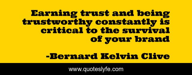 This page presents the quote "Earning trust and being trustworthy constantly is critical to the survival of your brand". Author of this quote is Bernard Kelvin Clive. This quote is about trustworthy, branding, constantly, personal-branding,.