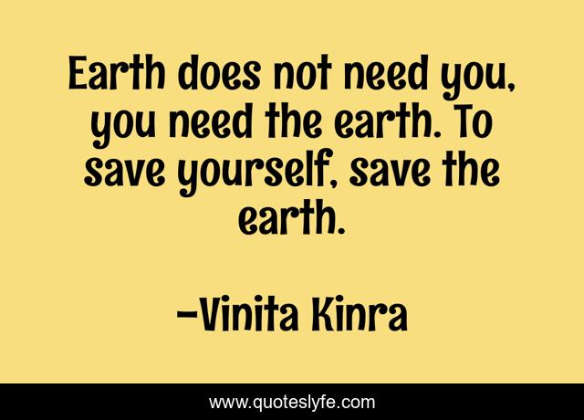 "Vinita Kinra Quotes." Quoteslyfe.com, 2025. Fri. 05 Dec. 2025. <https://www.quoteslyfe.com/quote/Earth-does-not-need-you-you-need-192622>.