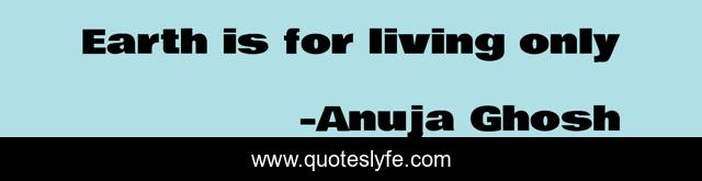 "Anuja Ghosh Quotes." Quoteslyfe.com, 2025. Sat. 06 Dec. 2025. <https://www.quoteslyfe.com/quote/Earth-is-for-living-only-105370>.