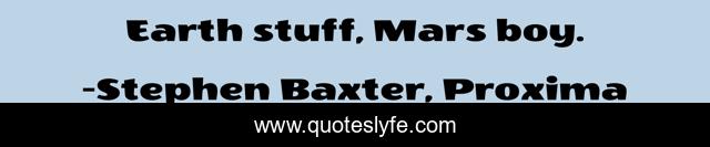 This page presents the quote "Earth stuff, Mars boy.". Author of this quote is Stephen Baxter, Proxima. This quote is about earth, mars,.