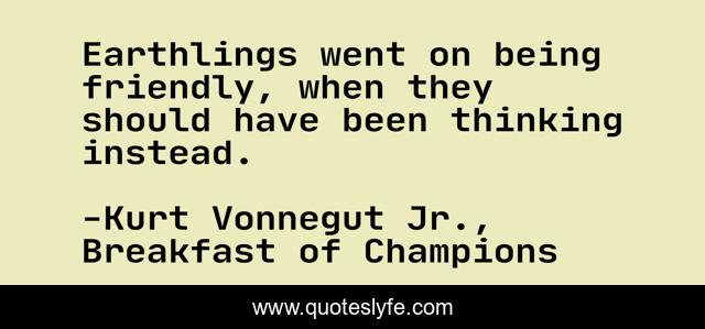 "Kurt Vonnegut Jr., Breakfast of Champions Quotes." Quoteslyfe.com, 2025. Sat. 06 Dec. 2025. <https://www.quoteslyfe.com/quote/Earthlings-went-on-being-friendly-when-they-12685>.