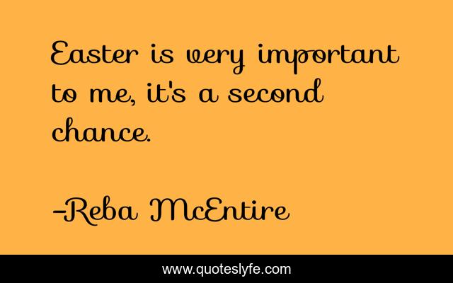 This page presents the quote "Easter is very important to me, it's a second chance.". Author of this quote is Reba McEntire. This quote is about me, chance, second chance,.