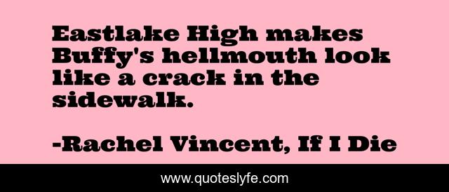 This page presents the quote "Eastlake High makes Buffy's hellmouth look like a crack in the sidewalk.". Author of this quote is Rachel Vincent, If I Die. This quote is about young-adult, rachel-vincent, young-adult-series,.