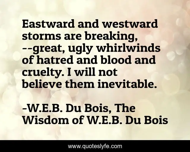 "W.E.B. Du Bois, The Wisdom of W.E.B. Du Bois Quotes." Quoteslyfe.com, 2025. Mon. 08 Dec. 2025. <https://www.quoteslyfe.com/quote/Eastward-and-westward-storms-are-breaking-great-194658>.