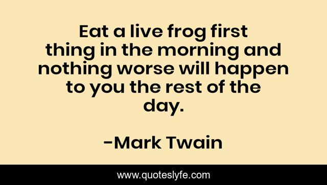 This page presents the quote "Eat a live frog first thing in the morning and nothing worse will happen to you the rest of the day.". Author of this quote is Mark Twain. .