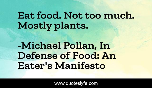 "Michael Pollan, In Defense of Food: An Eater's Manifesto Quotes." Quoteslyfe.com, 2025. Tue. 09 Dec. 2025. <https://www.quoteslyfe.com/quote/Eat-food-Not-too-much-Mostly-plants-167826>.