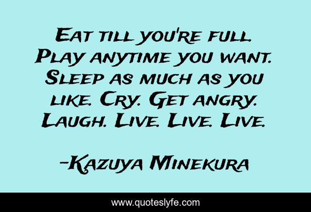 This page presents the quote "Eat till you're full. Play anytime you want. Sleep as much as you like. Cry. Get angry. Laugh. Live. Live. Live.". Author of this quote is Kazuya Minekura. .