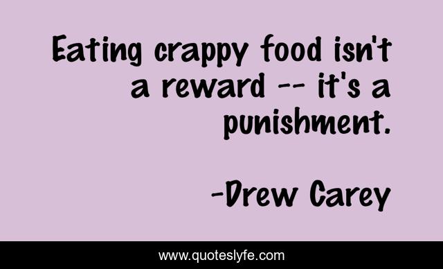 This page presents the quote "Eating crappy food isn't a reward -- it's a punishment.". Author of this quote is Drew Carey. This quote is about eating, weight-loss, health,.