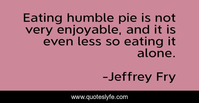 This page presents the quote "Eating humble pie is not very enjoyable, and it is even less so eating it alone.". Author of this quote is Jeffrey Fry. This quote is about not-very, eating, humble-pie, less, enjoyable, alone,.