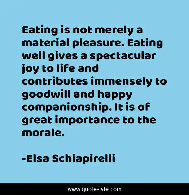 "Elsa Schiapirelli Quotes." Quoteslyfe.com, 2025. Fri. 05 Dec. 2025. <https://www.quoteslyfe.com/quote/Eating-is-not-merely-a-material-pleasure-267474>.